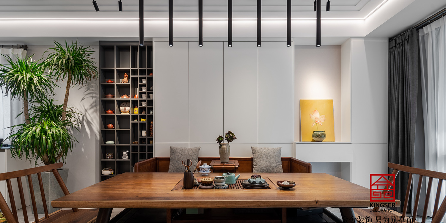 禪韻流水,樹影茶香,歸家后將喧囂的一切拋棄隔絕。整體空間利用合理,以實(shí)用性為前提,設(shè)計(jì)的真諦是走進(jìn)生活