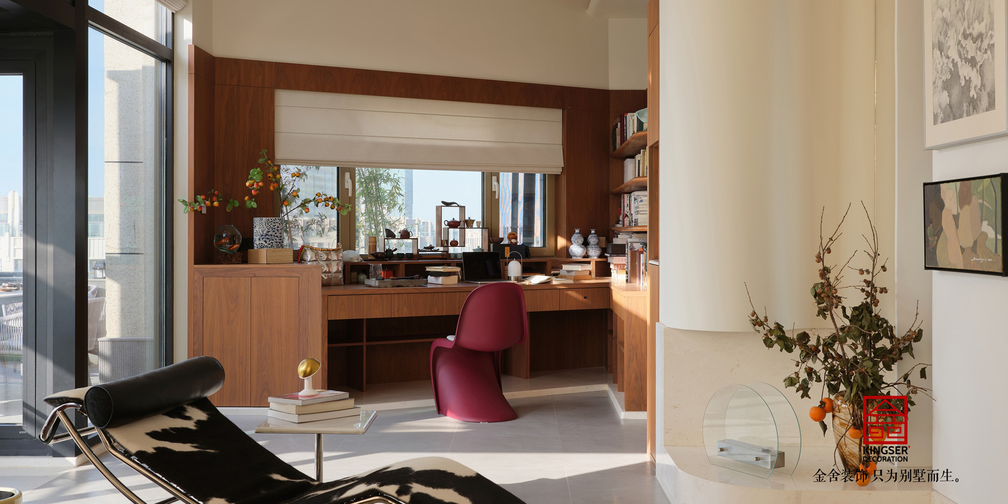 本案在配色上深邃又冷靜,完全契合業(yè)主對(duì)于新家的設(shè)定,設(shè)計(jì)師將居住者的需求與情懷融于一體,賦予空間更加鮮明的性格